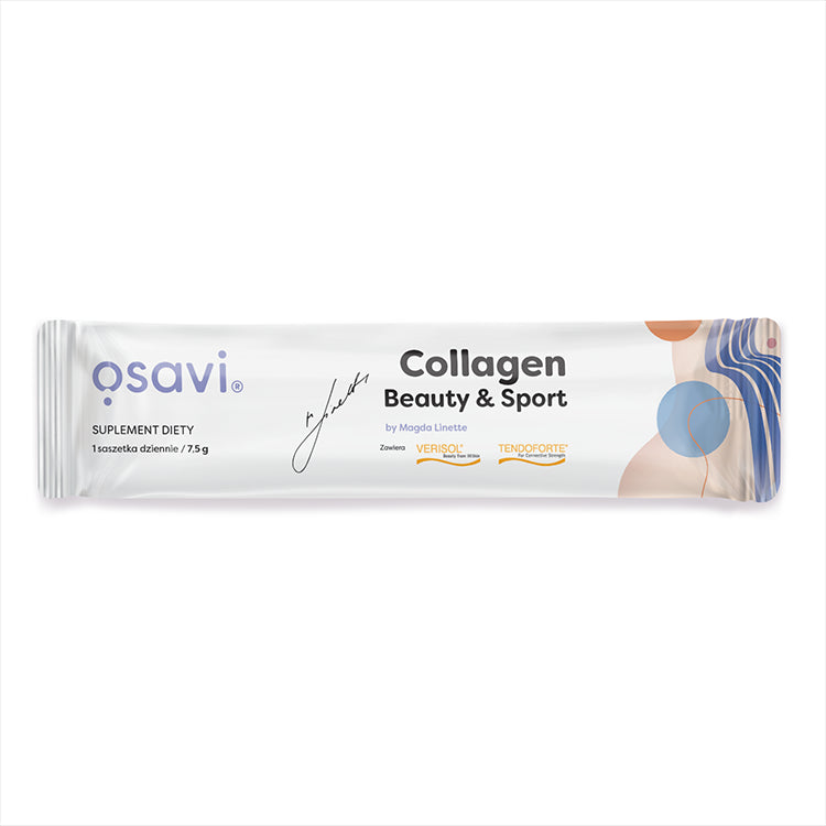 Osavi Collagen Beauty & Sport to wysokiej jakości suplement diety, stworzony we współpracy z Magdą Linette, znaną polską tenisistką. Produkt zawiera doskonałą formułę kolagenu, która wspiera zdrowie skóry, włosów, paznokci oraz stawów. W każdej porcji znajduje się 7.5 gramów kolagenu, co przyczynia się do poprawy elastyczności i nawodnienia skóry, a także regeneracji tkanek. Suplement ma neutralny smak, dzięki czemu można go łatwo dodawać do ulubionych napojów czy posiłków. Idealny dla osób aktywnych fizycznie, które pragną zadbać o swoje ciało i wspierać procesy regeneracyjne organizmu. Produkt jest odpowiedni dla sportowców oraz wszystkich dbających o urodę, oferując im wsparcie w codziennym funkcjonowaniu.